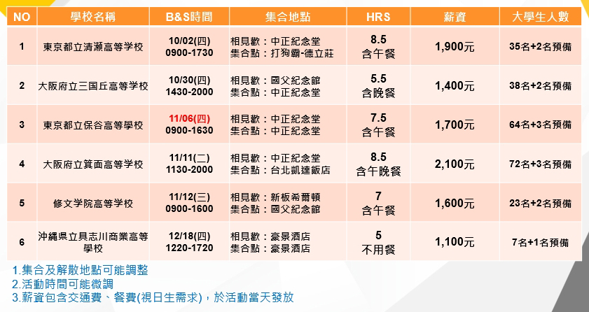 二、需求人數:大學學生數十名,詳見下方梯次表。